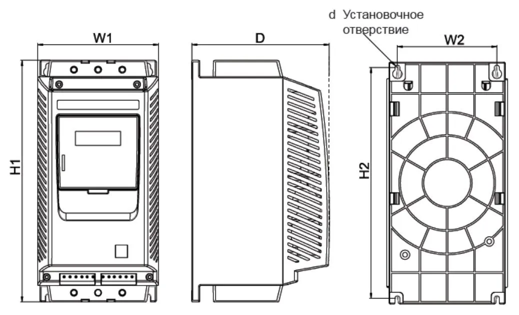 Что касается установки, то представленная модификация устройства плавного пуска двигателя не предполагает вертикального монтажа. Крепление должно выполняться посредством шурупов и болтов, которые крепят агрегат к твердой поверхности.